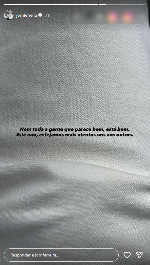 O também ex-concorrente da Casa dos Segredos publicou um story com uma mensagem enigmática que alarmou os fãs: “Nem toda a gente que parece bem está bem, este ano estejamos mais atentos uns aos outros”.