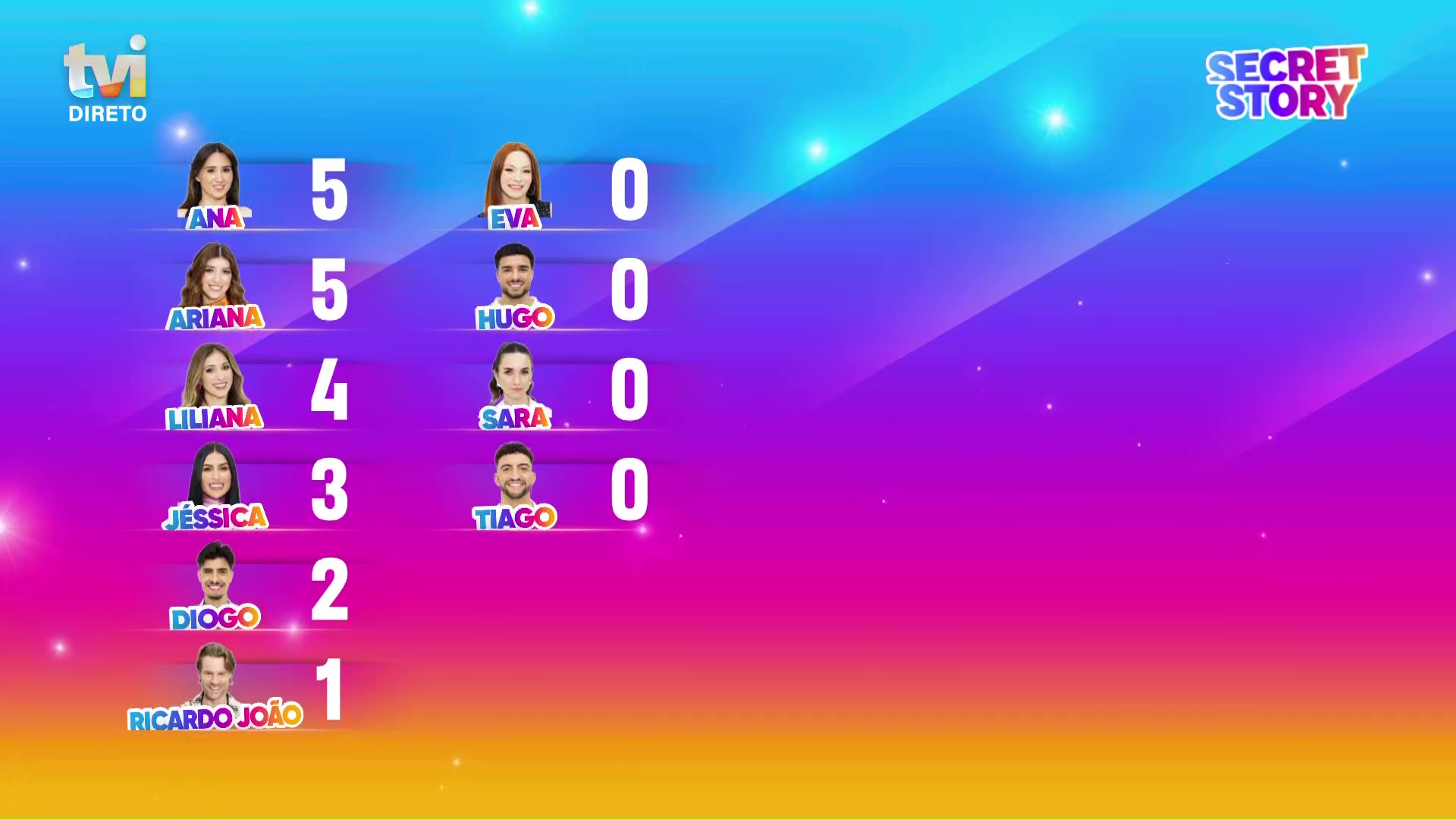 - Tiago e Ricardo – 1 voto livre cada: Ana/Diogo; Em consenso: Ariana e Liliana