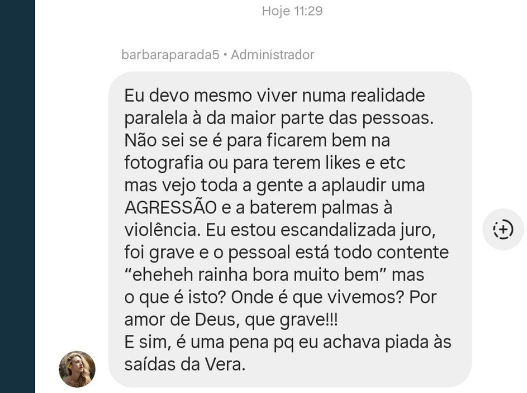 Bárbara Parada parte o silêncio: “Viver numa realidade paralela”! Recado direto a quem defende Vera