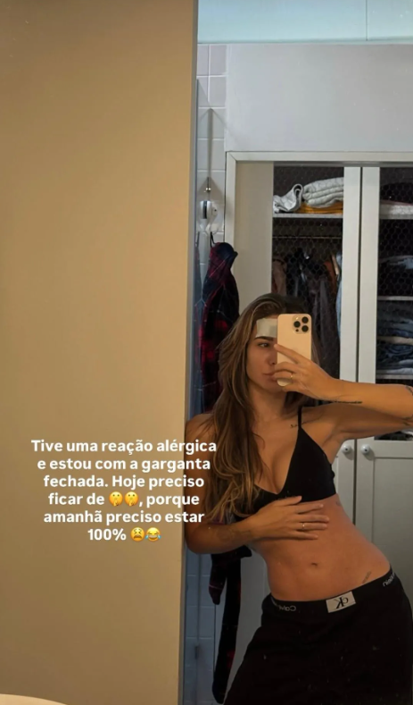 Bruna Gomes revelou nas redes sociais sofre reação alérgica