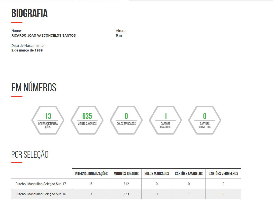 A ligação de Ricardo João à equipa nacional aconteceu em 2005, ano em que o concorrente representou a seleção de sub-17 pela primeira vez. Esta internacionalização no escalão de formação justifica o segredo que levou para o reality show da TVI.