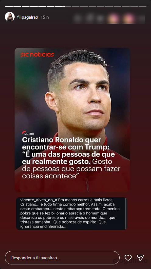 Gosta de Donald Trump? Filipa Galrão partilha comentário: “Era menos carros e mais livros, Cristiano, que pobreza de espírito”