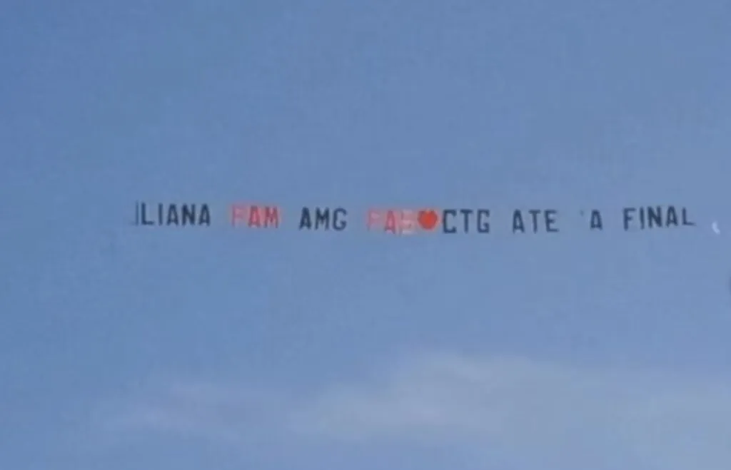 Pouco depois do almoço, enquanto relaxava na piscina, Liliana levantou os olhos e viu um avião a sobrevoar a casa com uma faixa especial. Na mensagem podia ler se, “Liana família, amigos fãs ctg até à final”.