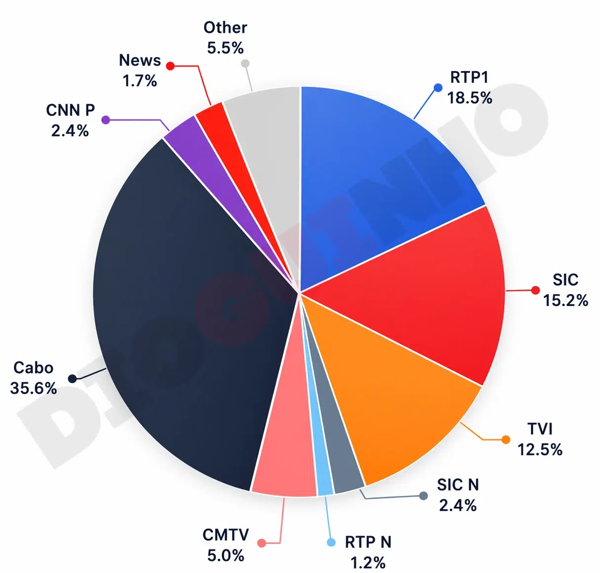 A estação pública fechou o dia com expressivos 18,5% de share, deixando a SIC na segunda posição com 15,2% e a TVI em terceiro com 12,5%, num dia em que os canais por cabo somaram 35,6% e a RTP2 se ficou pelos residuais 0,6%.