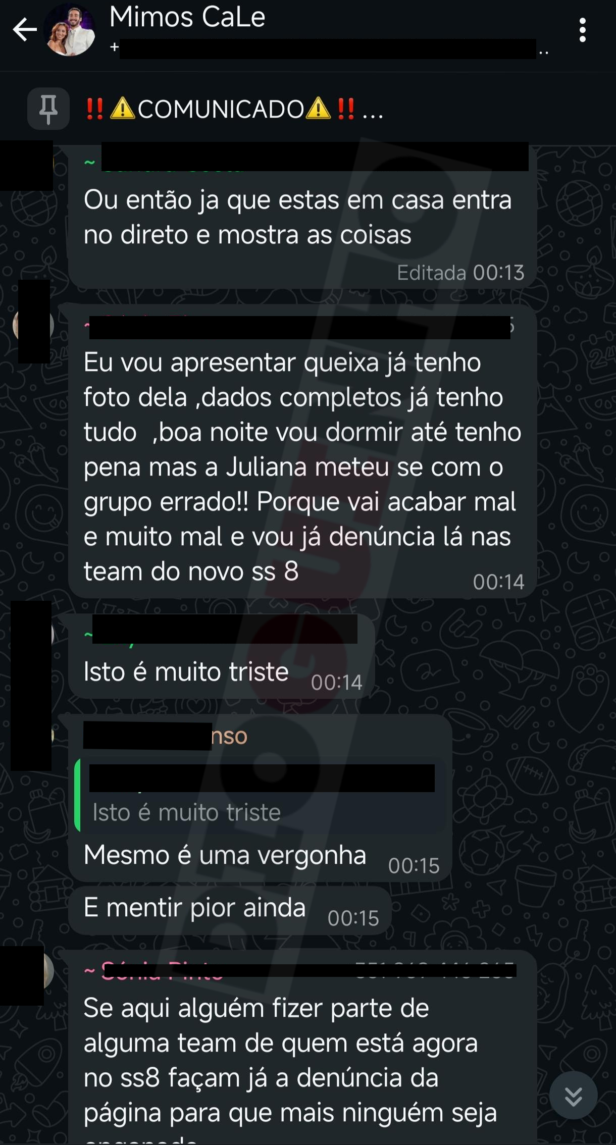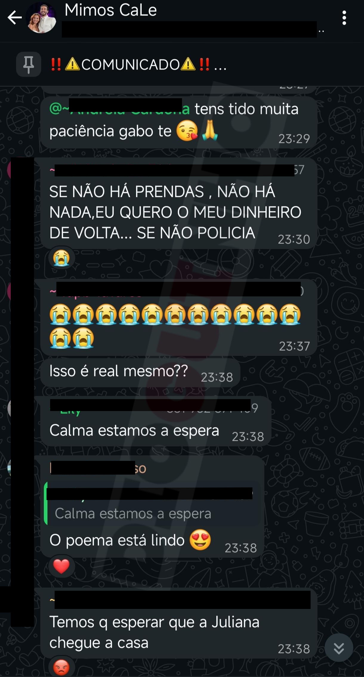 Segundo o que o DIOGUINHO apurou, essas pessoas começaram a recrutar fãs dos grupos oficiais do Afonso e da Miranda, pedindo dinheiro com a justificação de que iam comprar prendas para os Cale, e até para o Sérgio, para a mulher dele e para os filhos.