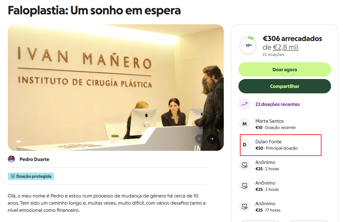 No texto de apresentação da campanha, Pedro abre o coração e explica as dificuldades que tem enfrentado ao longo da última década, detalhando os motivos que o levaram a pedir o apoio do público. “Olá, o meu nome é Pedro e estou num processo de mudança de género há cerca de 10 anos. Tem sido um caminho longo e, muitas vezes, muito difícil, com vários desafios tanto a nível emocional como financeiro”, começou por partilhar com os seus seguidores e potenciais doadores.