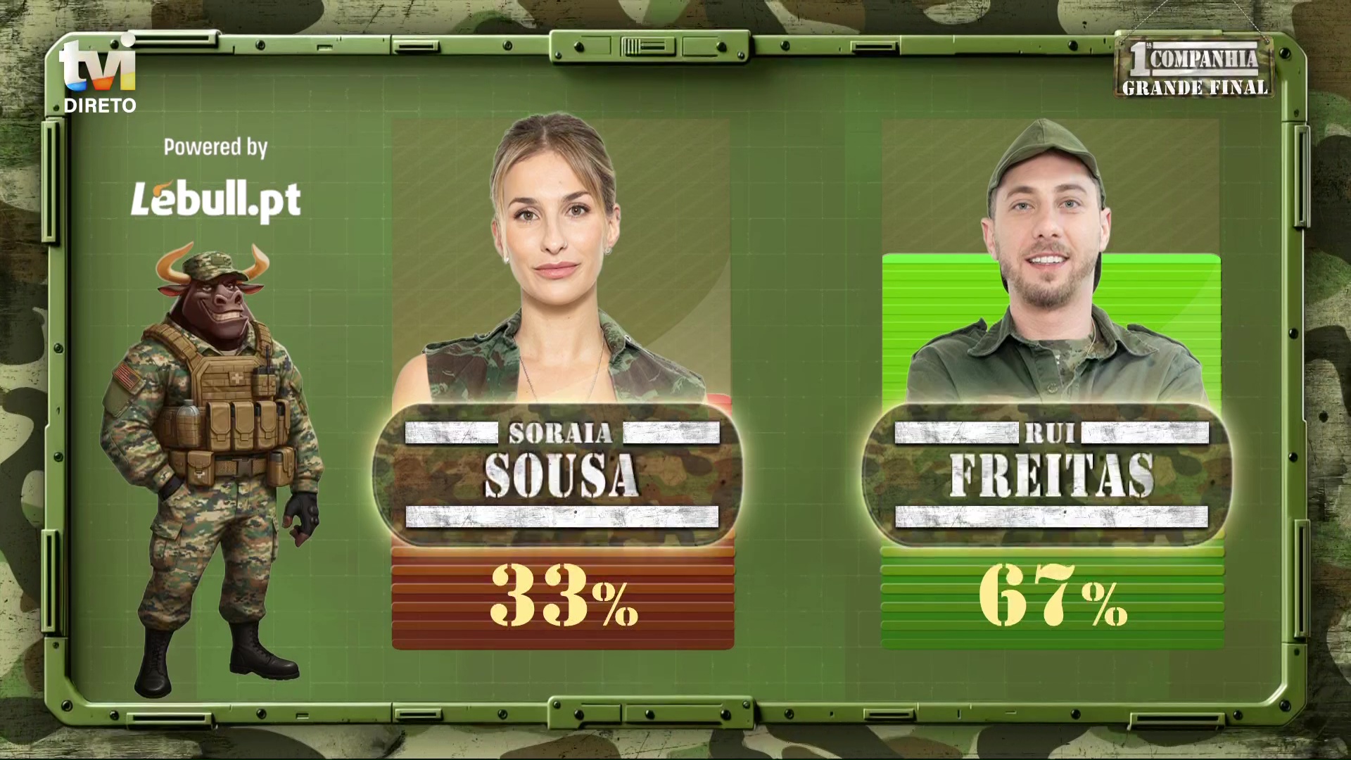 O duelo final foi disputado frente a frente com Soraia Sousa, que conquistou a medalha de prata e o segundo lugar do pódio com 33 por cento dos votos. A votação dos portugueses ditou a vitória de Rui Freitas, que somou 67 por cento da preferência do público na derradeira decisão da noite.