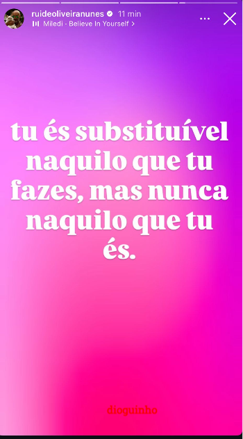 Entretanto, as reações à saída de Rui Oliveira Nunes multiplicaram-se na internet e uma das mensagens de maior destaque partiu de Ágata Rodrigues.