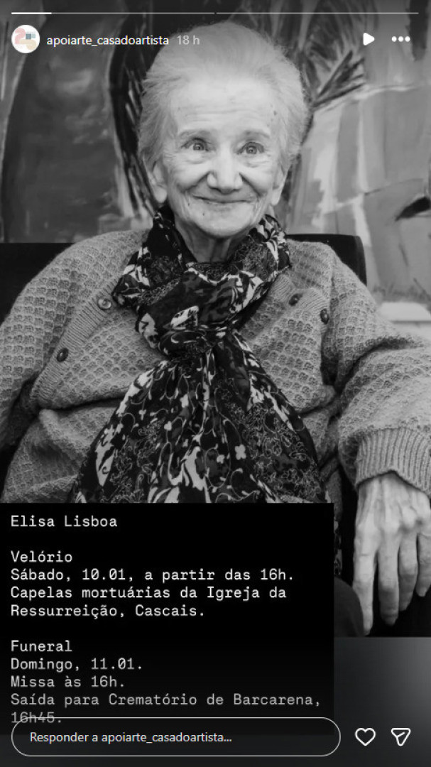 Após a cerimónia religiosa, dar-se-á a saída do cortejo fúnebre, pelas 16h45, rumo ao crematório de Barcarena, onde se realizará a despedida final. Estes detalhes foram avançados pela Casa do Artista, a instituição que acolheu Elisa Lisboa como residente desde 2018 e que foi a primeira a comunicar a triste notícia do seu desaparecimento.