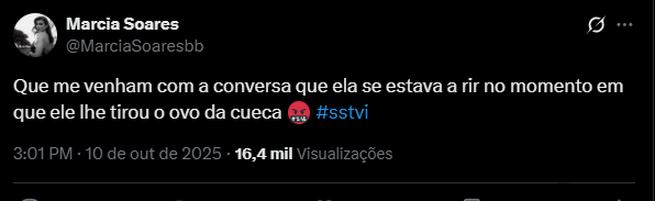 Entretanto, Márcia Soares comentou, “que me venham com a conversa que ela se estava a rir no momento em que ele lhe tirou o ovo da cueca”.