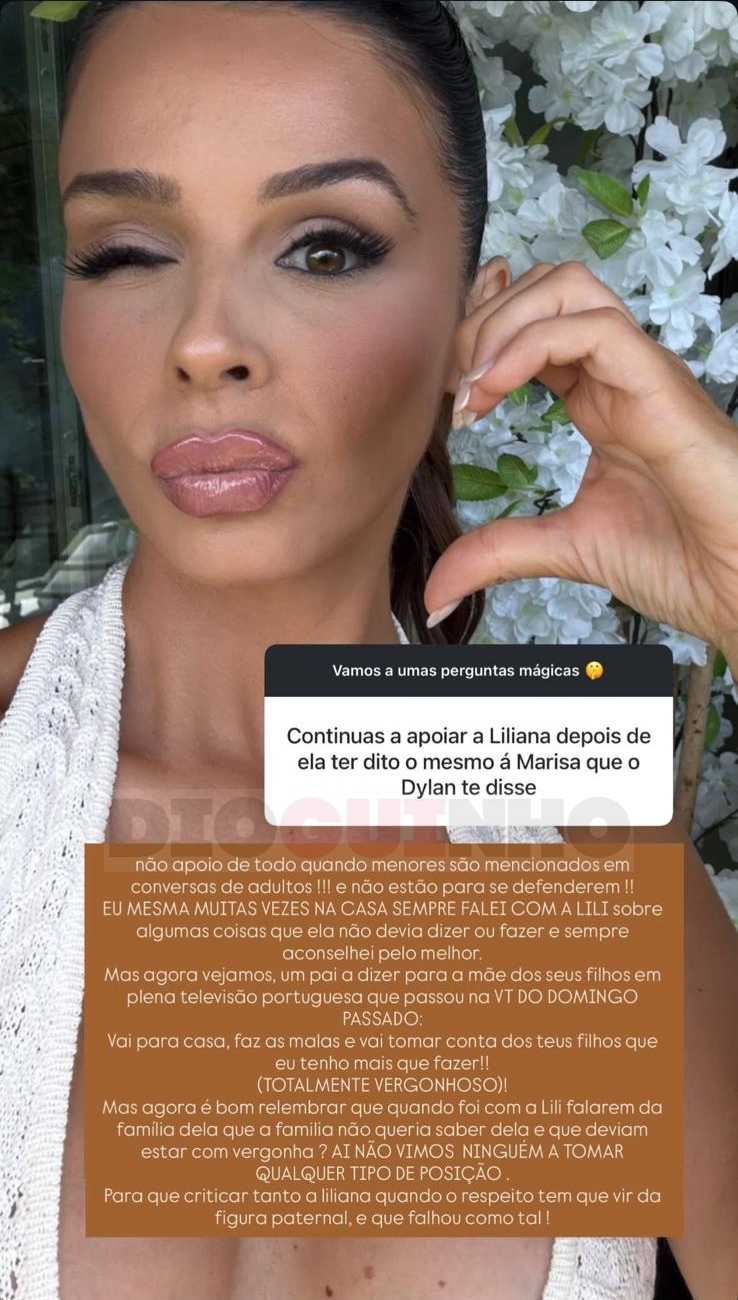 Questionada por um fã nas redes sociais se continuava a apoiar Liliana, depois de esta ter mencionado os filhos de Marisa numa discussão, a ex-concorrente condenou o ato, mas lançou um ataque feroz a Pedro Jorge.